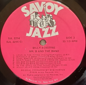 「ウー・バップ・シュバム」 … ガレスピーなどによく聴かれる楽団員とのスキャット・コーラスが入る。ソロはTb、Tsが取る。エクスタインのヴォーカルは無し。
