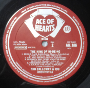 この録音では、リード・ヴォーカルのキャブが「ハイデ・ハイデ・ホー」と歌いかけるとバンドのメンバーが同じく「ハイデ・ハイデ・ホー」と応答する。黒人音楽独特の<コール・アンド・レスポンス>である。そこには呼びかけられたら答えなければならないという暗黙の掟があるようで、キャブはさらに「イニヒーニヒー」などと意味不明なことを歌いかけるとバンドも笑いながら同じく「イニヒーニヒー」と返すのである。もちろんこれはクラブで演奏する時には、キャブの呼びかけに対して客が答えるという演出になっており、キャブがいろいろな言葉で歌いかけ客席が笑いながら、場合によっては恥ずかしがりながら答えるという仕組みである。そしてこのような客席を巻き込むような演出はアメリカでは大受けだったことは容易に想像できる。このヒットによってキャブは「ザ・ハイ・デ・ホー・マン(The hi-de-ho man)」と呼ばれるようになる。そして厳しいアメリカのショウ・ビジネスを永く生き抜いていくのである。