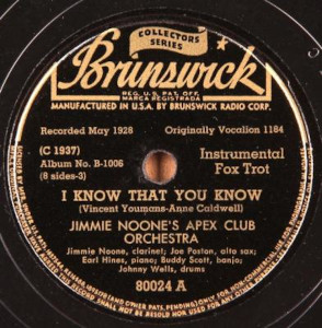 ハインズは1927年の暮れにジミー・ヌーン率いる「エイペックス・クラブ・オーケストラ」に加入する。この「エイペックス・クラブ・オーケストラ」について粟村師は次のように述べている。「史上に名高いヌーンのエイペックス・クラブ・オーケストラは、アール・ハインズのピアノを擁し、クラリネットとアルト・サックスにリズムが付くというディキシーの範疇を全く超えた異色の編成と内容を持っていた。