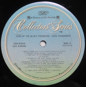 ジャック・ティーガーデンの1936年の録音の多くはジャック・ティーガーデン名義のレコード・ボックスに収録されているが、元々の名義はフランキー・トランバウアーである。本来はトランバウアーで書かないといけないだろう。