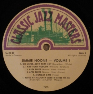 Ʊ¶Ê¤ÏCD¥Ü¥Ã¥¯¥¹¡ÉThe recordinngs of Jimmie Noone¡É¡ÊJSP 926¡Ë¤Ë¤â¼ýÏ¿¤µ¤ì¤Æ¤¤¤ë¤¬¡¢Ï¿²»Æü¤¬7·î23Æü¤È¤Ê¤Ã¤Æ¤ª¤ê¡¢¤Þ¤¿¥Á¥å¡¼¥Ð¤Î¥í¥¦¥½¥ó¡¦¥Ó¥å¥Õ¥©¡¼¥É¤¬²Ã¤ï¤Ã¤Æ¤¤¤Ê¤¤¤³¤È¤Ë¤Ê¤Ã¤Æ¤¤¤ë¡£¤·¤«¤·±éÁդϡÈJimmie Noone Vol.1¡É¤ÈƱ¤¸¤Ç¡¢²»¤Ï¤É¤¦Ä°¤¤¤Æ¤â¥Á¥å¡¼¥Ð¤Î²»¤¬Ä°¤³¤¨¤ë¡£¤È¤¤¤¦¤³¤È¤Ç¥ì¥³¡¼¥É¡ÈJimmie Noone Vol.1¡É¤ÎÊý¤ò¿®ÍѤ¹¤ë¤³¤È¤Ë¤·¤è¤¦¡£