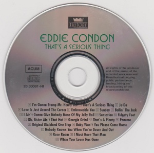 この日の録音は、CD"Eddie Condon/That's a serious thing"に3曲、メインストリーム・レコーズから発売された「栄光のコンドン・ジャズ」に1曲収められている。油井正一氏によれば全体で5曲録音されたというので、残り1曲あることになる。