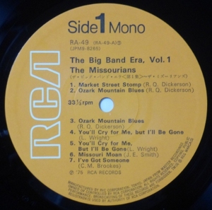 このバンドはその名の通りミズーリ州に生まれた。ミズーリ州はアメリカの中央、ミシシッピ川を遡ってセントルイスに達し、支流のミズーリ川を登ると西の州境にカンサス・シティ・ミズーリがある。この地方はニューオリンズ、シカゴ、ニューヨークというジャズの歴史の本流からは外れているが、その発展の中では無視できない重要な一つの拠点であった。ニューオリンズからのバンドもその行先が先ずシカゴ止まりであったころ、地方からニューヨークに出てきたバンドの先駆者として、そして他とは違った新しいスタイルで「スイング」の形成に刺激を与えたバンドとして「ザ・ミズーリアンズ」の名を忘れることは出来ない。池上氏は、このバンドが、この時期にレコードを残したことはテリトリー・バンドの一面を知る上でも重要なことである、という。