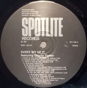 ¡ãContents¡ä ¡Ä ¡"Charlie Parker/Every bit of it"(Spotlite SPJ150D)¡õ¢¡Ö¥¶¡¦¥¸¥Ë¥¢¥¹¡¦¥ª¥Ö¡¦¥Á¥ã¡¼¥ê¡¼¡¦¥Ñ¡¼¥«¡¼¡×(Savoy MG-12014)