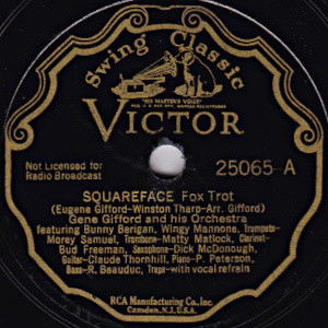 ギフォードはご存知のようにカサ・ロマ楽団のアレンジャーとして名を上げた鬼才で、その精緻極まるアレンジメントは他の追随を許さないものがあった。そんなギフォードはどのような理由からか1934年にカサ・ロマ楽団を去る。そしてここでこのような録音を行っている。レコード裏面のライナーノートで油井正一氏はこの件に関してはそれほど深く追求していない。油井氏によれば、「ジーン・ギフォード楽団という名前で吹き込まれたものだが、もちろんレコーディングのためのオールスター編成であると述べ、、端からBGやエリントンのようにレギュラー・バンド化を狙ったものではないが、集められた面子は超一流で、それもギフォードの名声ゆえであると述べている。