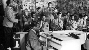 この年ベイシー楽団の活躍には目を見張るものがあります。レコーディングは年明け早々の1月3日から開始されていますし、1月16日のベニー・グッドマンのカーネギー・ホール・コンサートにはエリントン楽団を抑えて自身含め4人の主力メンバーを送り出しています。メンバーについてもTpにハリー・"スィーツ"・エディソンを加え、ますます充実の一途をたどっています。そして年末の「フロム・スピリチュアルス・トゥ・スイング」コンサートでは、メイン・アクトを務めるに至ります。しかし思い返せば、ベイシー楽団はたった1年少し前の1936年にニュー・ヨーク・デビューし、1937年初頭に初レコーディングを行ったばかりの言ってみれば新人バンドということもできます。それがこの年には黒人ビッグ・バンドを代表するような存在になるのですが、このような破格の出世はどのようにして成し遂げられたのでしょうか?